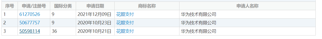 小编 7 月 15 日消息,近日,华为技术有限公司申请的两枚“花瓣支付”商标进度变更为“已注册”,两商标申请于 2020 年 10 月,国际分类为金融物管、科学仪器。此外,华为于 2021 年 12 月再次申请科学仪器类“花瓣支付”商标,目前该商标状态为等待实质审查。