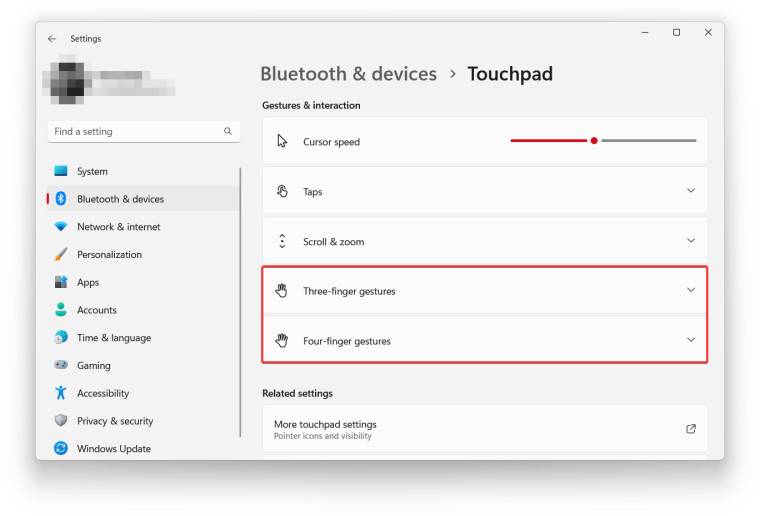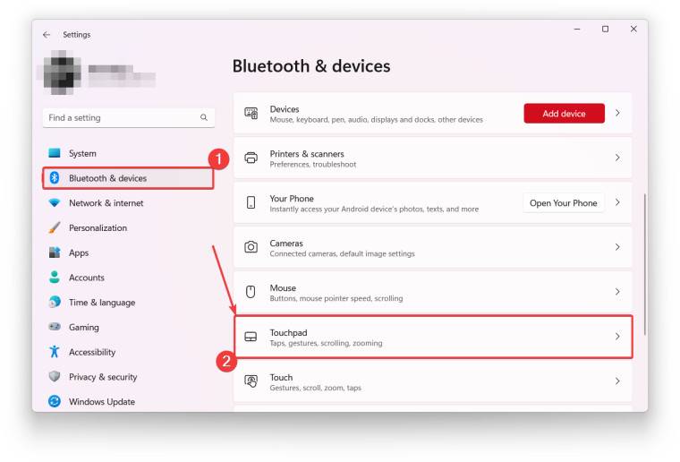 打开设置应用程序,然后转到蓝牙和设备> 触摸板。