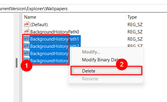 13、对您要删除或清除的所有BackgroundHistoryPath字符串值执行此操作。
