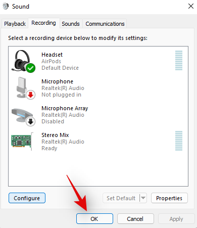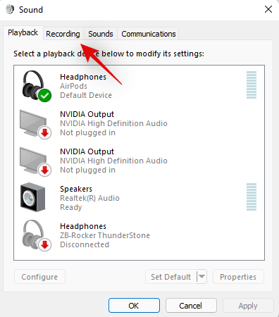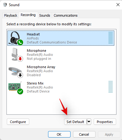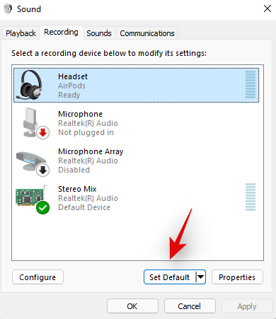 如果 Airpods 是您在所有这些地方的默认设备,那么您已通过此检查并继续阅读指南。但是,如果未选择 Airpods 作为默认设备,那么我们建议您执行相同操作并尝试使用您的 Airpods,然后再继续执行指南。