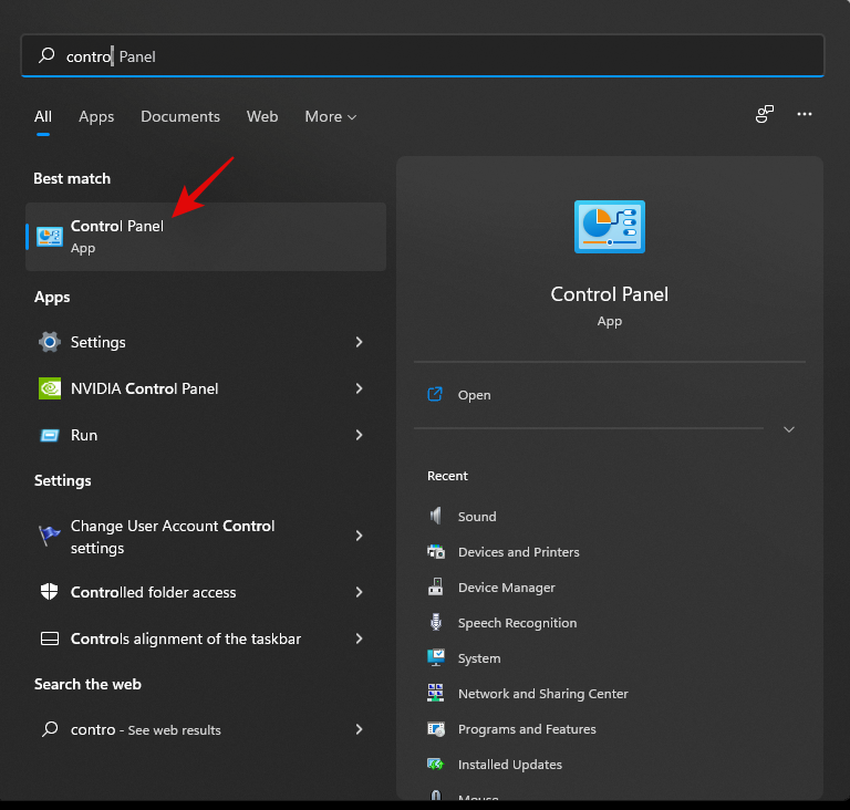 启动开始菜单,搜索控制面板,然后从搜索结果中启动它。