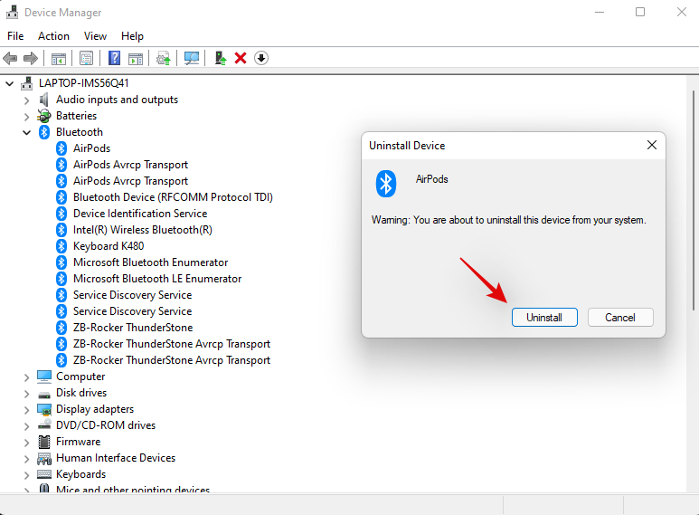 所选设备现在将从您的系统中卸载。重复上述步骤,从您的 PC 中删除与 Airpods 相关的任何其他灰显设备。