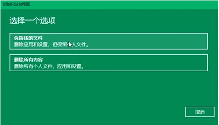 3、弹出初始化此计算机的窗口,您可以根据自己的需要选择保留或删除文件。选择后,可以等待系统完成一键式重装恢复系统的操作。
