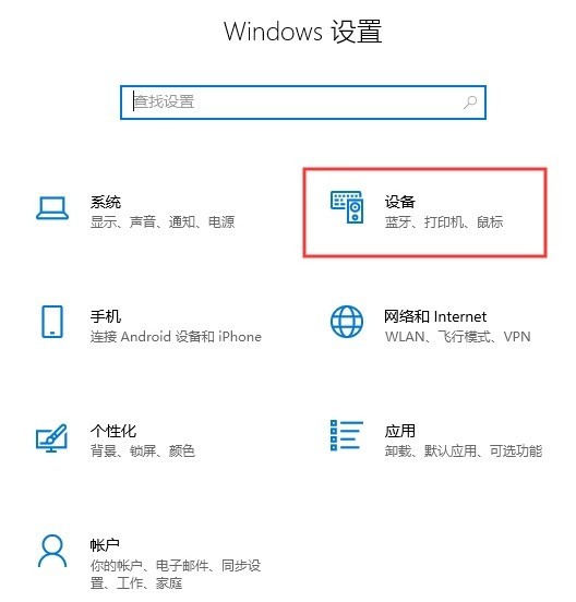 2、在弹出的Windows设置页面中点击“设备”打开设备设置界面。
