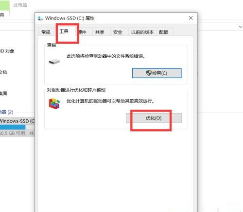 2、在弹出来的页面中,点击“工具”选项,点击“优化”按钮,在页面中找到“已计划的优化”,点击右边的“更改设置”选项,然后选择一个月一次,点击确定即可。