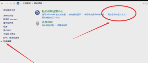 4、下一步,点击左边栏目的“轻松使用”,再点“更改鼠标的工作方式”。