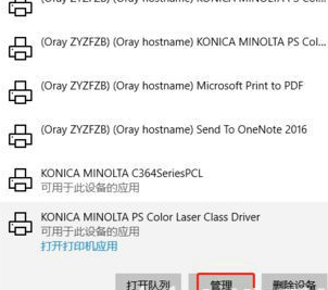 5、接着选择打印机,再点击管理。