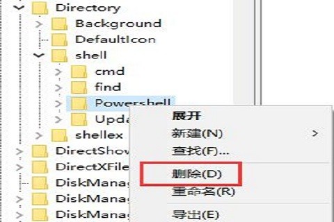 4、最后,我们在“shell”文件夹就可以看到你所有右键的设置项次了,右键单击你要删除的右键选项, 选择删除就可以了。