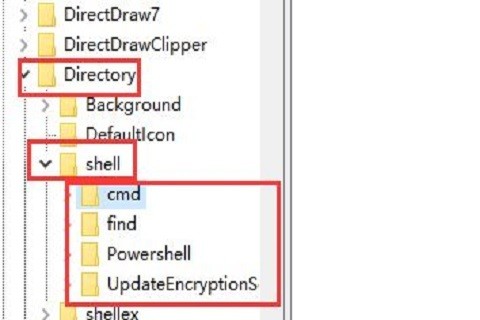 3、接着,在“HKEY_CLASSES_ROOT”目录下拉找到“Directory”文件夹,这个文件夹在很下方,下面进入“Directory”文件夹下面的“shell”文件夹;