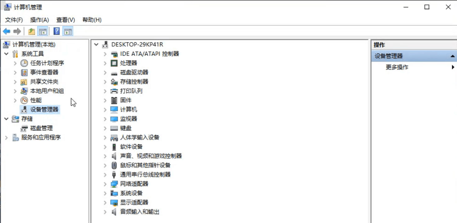 计算机管理窗口,左侧点击设备管理器,右侧找到并点击ide ata/atapi 控制器