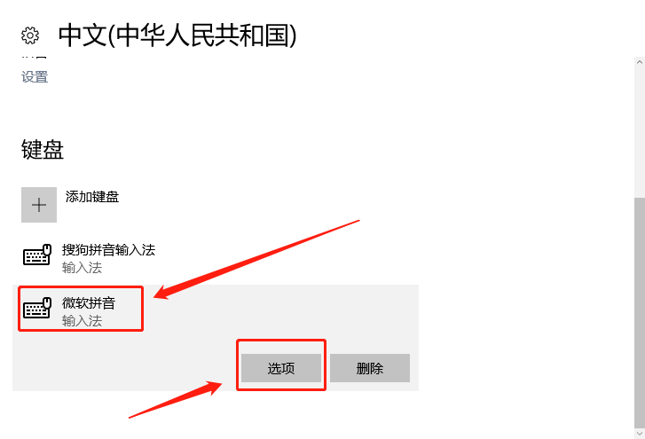 3、找到【微软拼音】,在展开的界面中点击【选项】