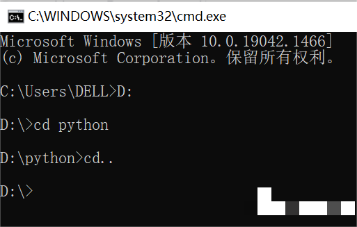 5、进入python文件夹后,输入cd/即可返回根目录D盘。