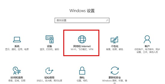 1、先打开设置,在windows设置界面中点击【网络和Internet】
