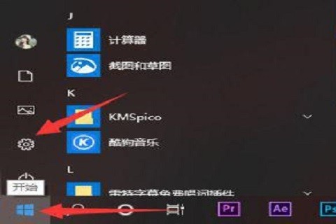 1、首先点击左下角的“开始”菜单,或者按下键盘的“Win键”,点击菜单中的“设置”图标;