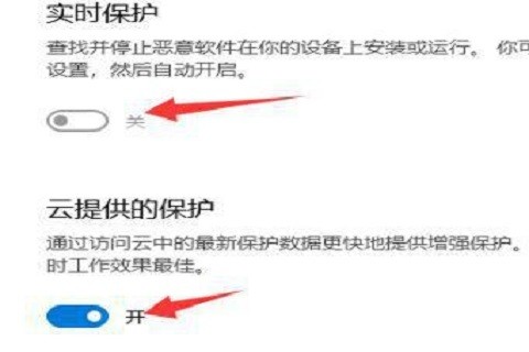 3、进入防病毒界面后,您可以直接查看防病毒设置,无需点击任何其他按钮,只需关闭“实时保护”和“云提供的保护”就可以了;