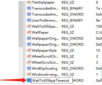 7、说明系统中之前已经有此文件,直接在右边找到名为“WaitToKillAppTimeout”的文件。如下图: