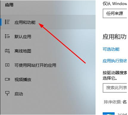 3、点击“应用和功能”。