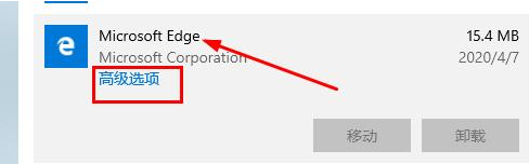 4、找到“Microsoft edge”点击“高级选项”。