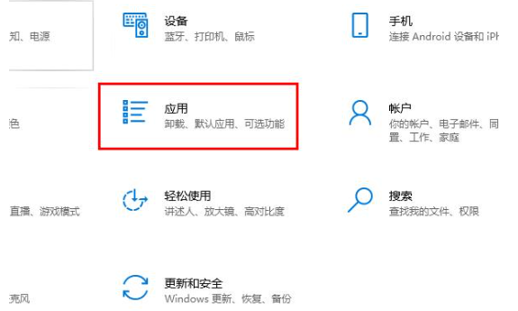 2、选择“应用”。