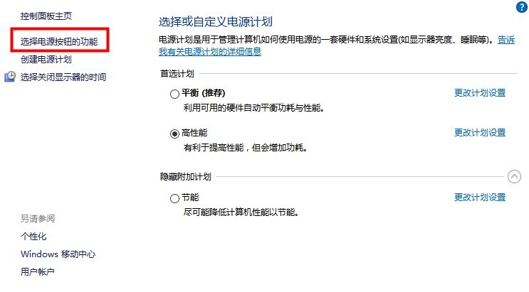 2、接着在电影选项界面中点击左侧的【选择电源按钮的功能】选项