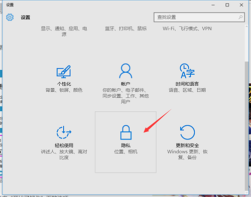 1、打开左下角开始菜单,选择设置,然后在打开界面中点击【隐私】