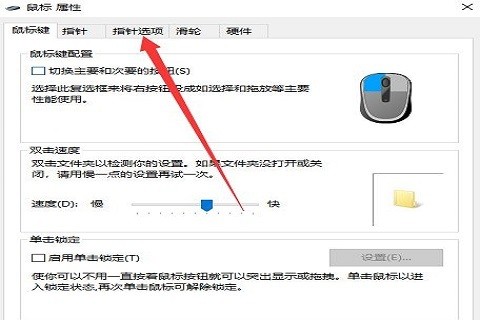 5、在鼠标属性弹出窗口中,找到右上角的“指针选项”并点击。