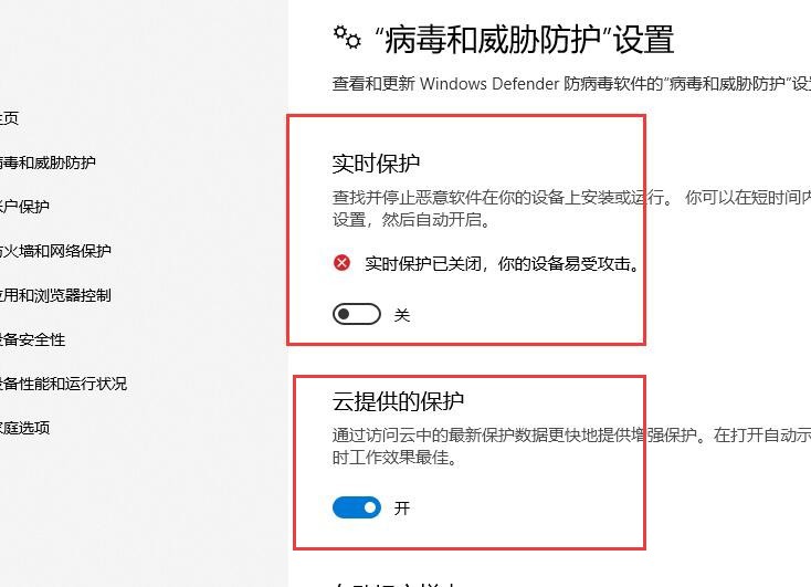 4、最后在打开的界面中将【实时保护】和【云提供的保护】选项都关闭即可