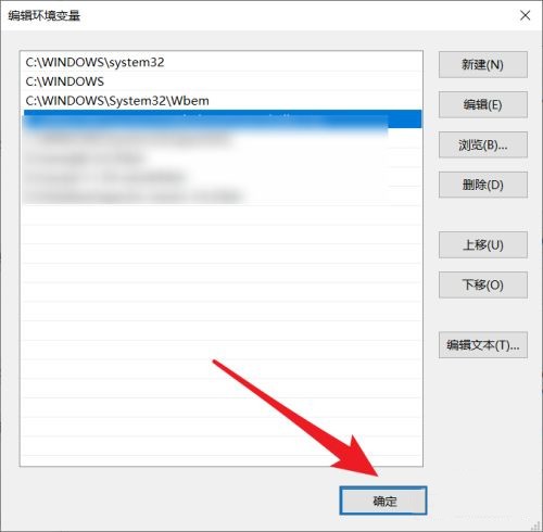 5、进入到环境变量编辑页面,将里面的内容修改为“C:WINDOWSsystem32 C:WINDOWS C:WINDOWSSystem32Wbem ”后,点击“确定”按钮,即可。