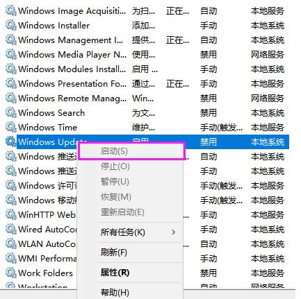 3、然后我们在服务界面找到 Windows Update 服务,单击右键,选择”停止“。