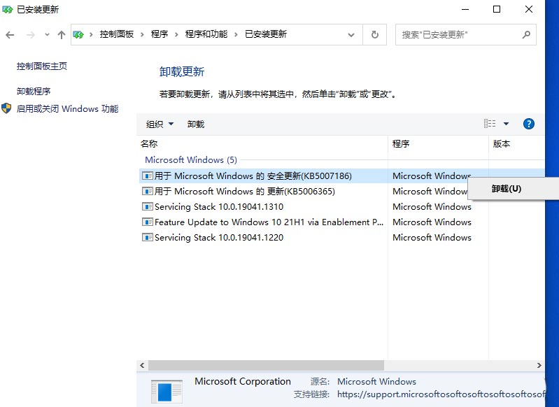 以上就是小编给大家分享的Win10卸载KB5007186方法介绍,想要了解更多内容,请关注本站,小编会持续为大家更新更多相关攻略。