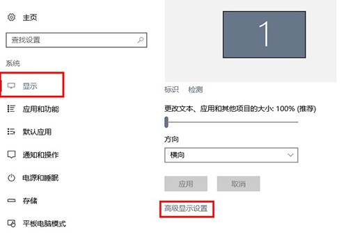 3、接着在【显示】的右侧界面中找到【高级显示设置】