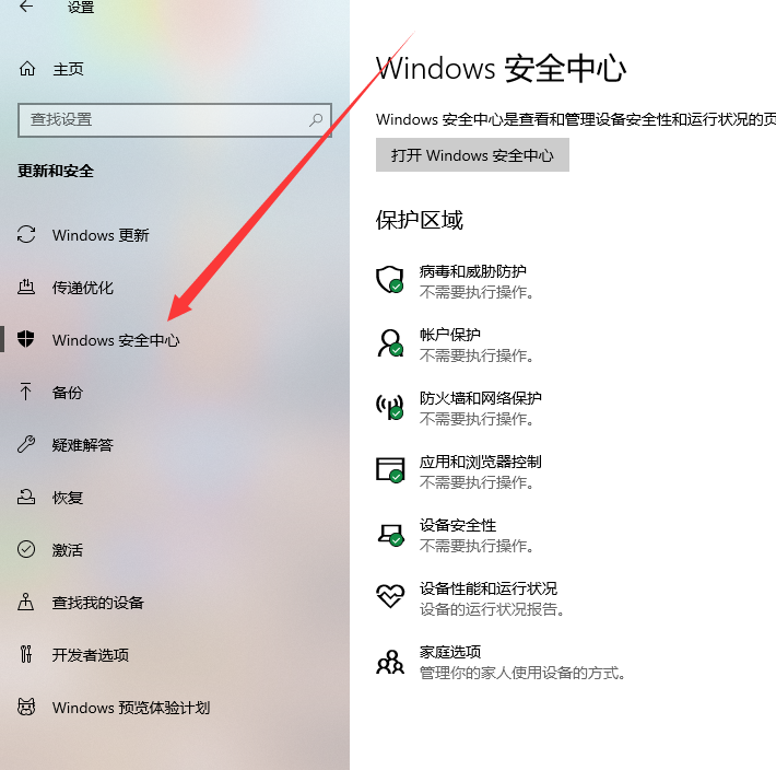 2、单击“Windows安全中心。