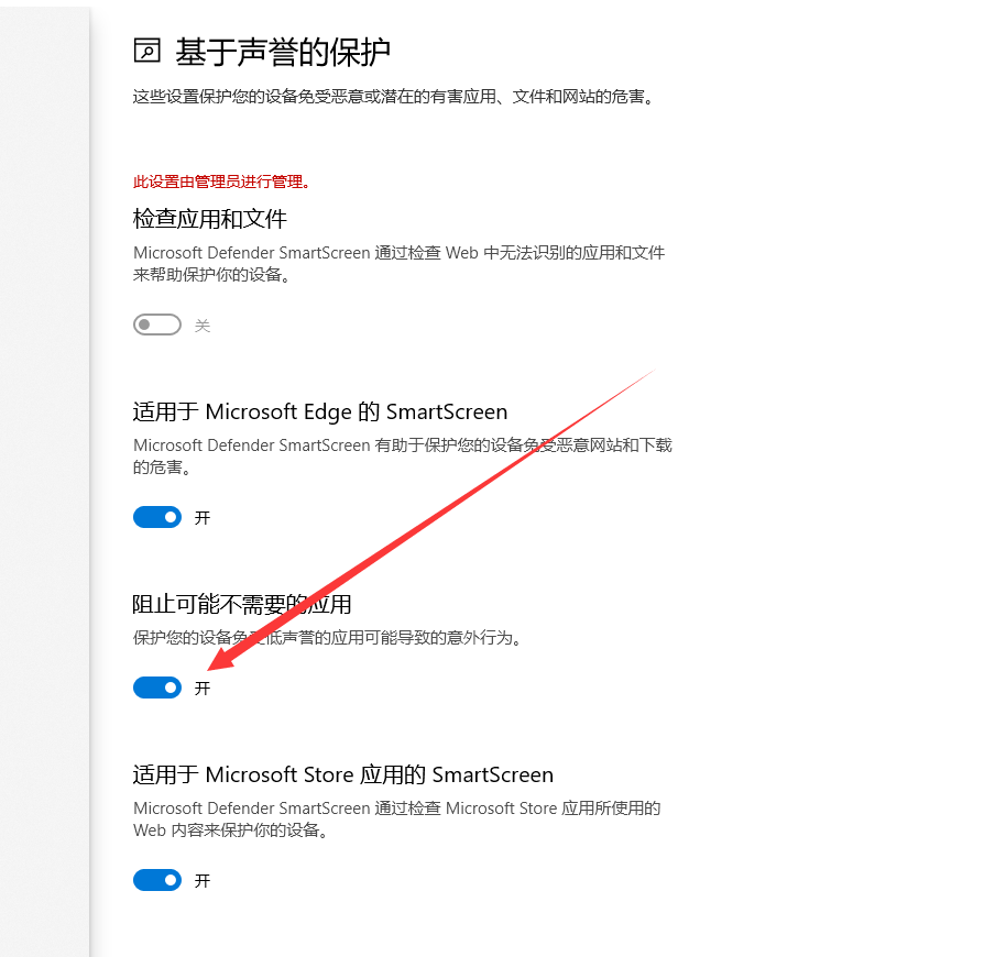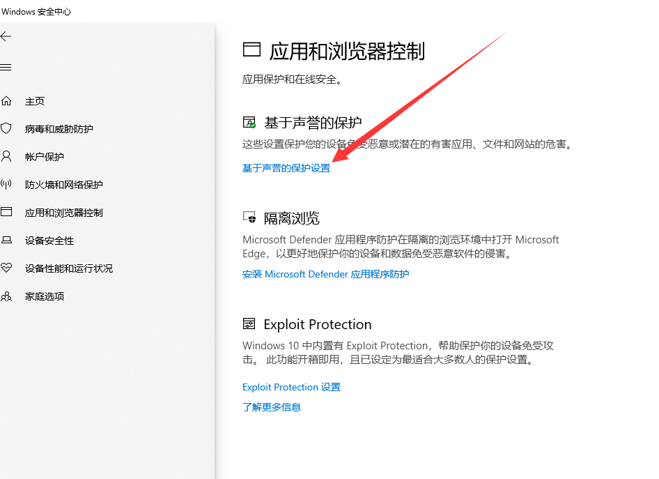 4、点击基于声誉的保护设置。