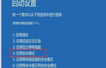 4、重启后,选择4进入安全模式;