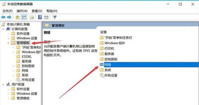 3、接着在管理模板右侧界面找到【网络】选项双击打开
