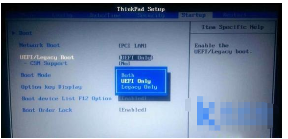3、thinkpad笔记本则在Startup下,把UEFI/Legacy Boot设置为UEFI Only;