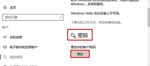 4、在右侧的界面中找到【密码】,点击下方的【更改】按钮