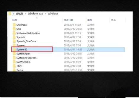 3、找到“System32”文件夹,双击进入“System32”目录。
