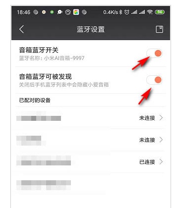 1、在手机小爱音响app中打开小爱音响的蓝牙开关。