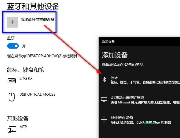 5、点击添加蓝牙或其它设备,选择蓝牙设备类型。