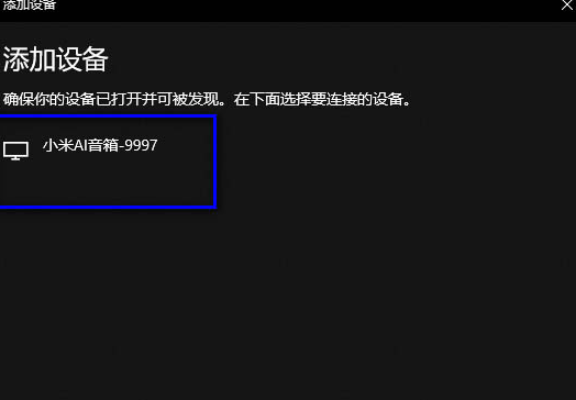 6、Windows10会自动搜索可见蓝牙,并会很快找到小爱音响的蓝牙设备。