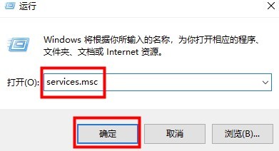 1、在桌面中按住【windows+R】打开【运行】,然后输入【services.msc】点击【确定】