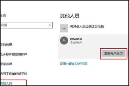 4、然后选择其它人员,然后点击要要设置的账户,点击更改账户类型按钮;