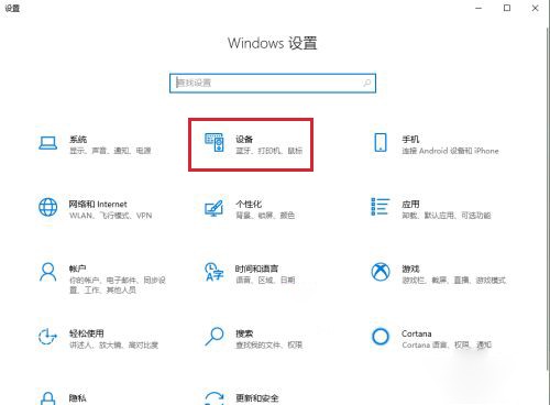 2、接着在windows设置界面中点击【设备】