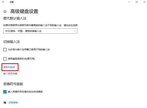 4、并在高级键盘设置界面中点击【语言栏选项】