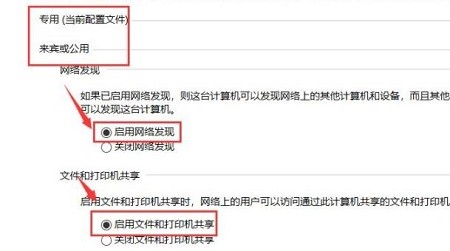 4、然后在弹出的设置中选“启用网络发现”和“启用文件和打印机共享”。