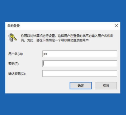 3、然后会弹出一个【自动登录】的窗口,我们需要将开机密码输入进去,点击【确定】,最后再重启电脑即可,下次开机就不需要再次输入密码了