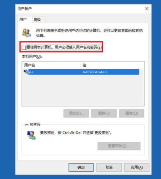 2、接着在【用户帐户】的【用户】窗口中将【要使用本计算机,用户必须输入用户名和密码】选项取消勾选