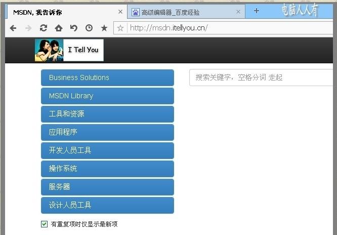 1、MSDN的全称是 Microsoft Developer Network(微软开发者网络)。这是一个和微软产品相关的开放平台,很多IT工程师就是从这里获得微软最新的资讯,从而对新版本系统、软件进行测试,开发与之相适应的软件、游戏等应用。如果使用关键词搜索,可能会发现类似的网站有很多,但是,关关停停,让网友产生联想和质疑。其实,微软的官网也会有MSDN库可以参考一下。