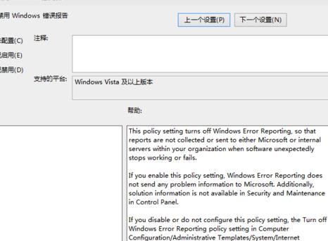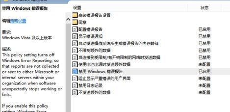 此时可查看windows错误报告设置为关闭状态